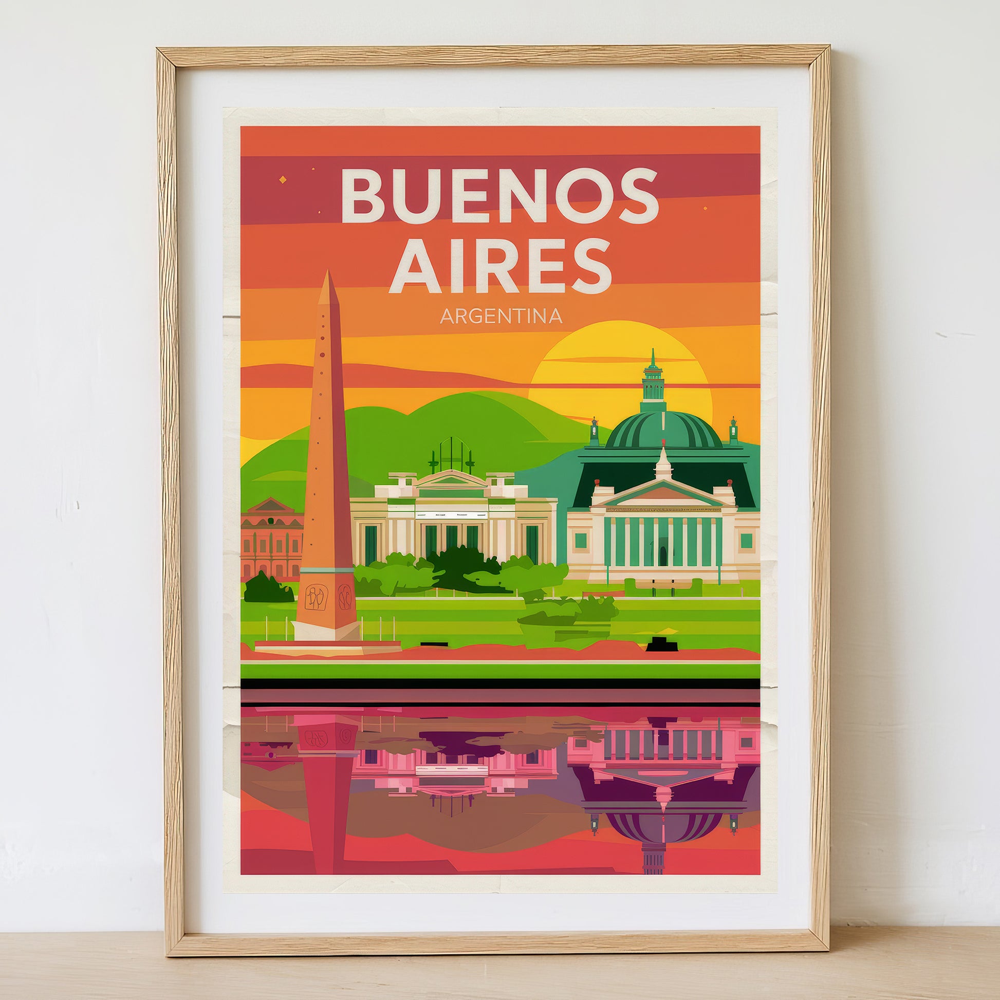 Buenos Aires - Sunrise Drawing Travel Poster Print