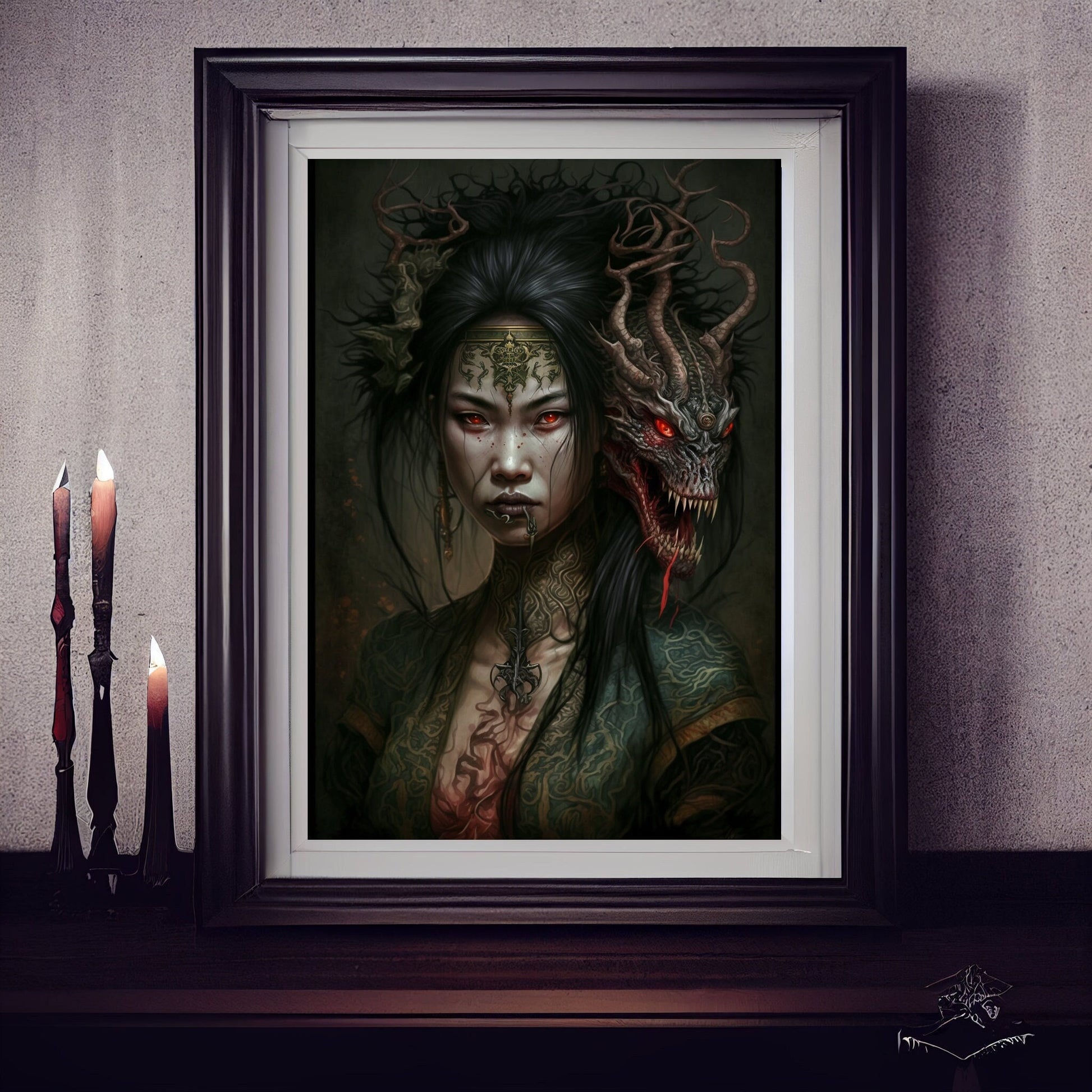 Geisha Art Print Demonic Geisha Art Print Poster in Renaissance Style Demon Geisha Poster Gothic Art Occult Painting Minimalist Wall Art